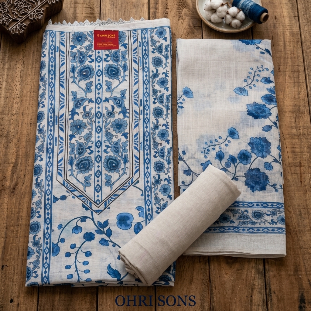 This charming Royal Blue Linen Un-Stich Fabric with Printing work. The suit piece set exudes soft elegance and feminine grace. Crafted from a lightweight, breathable fabric, the kurta is adorned with delicate Linen fabric with highlights beautifully across the surface, creating a fresh and timeless appeal. The neckline is enhanced with intricate detailing, adding a subtle touch. It is paired with coordinated with same color bottom and Dupatta with Royal Blue Cotton Linen Fabric.